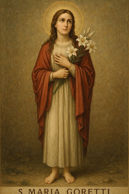 Martirologio Romano: Santa María Goretti, virgen y mártir, que en el transcurso de una infancia difícil, ayudando a su madre en las labores de la casa, se distinguió ya por su piedad. Cuando no contaba más que doce años, murió en defensa de su castidad, a causa de las puñaladas que le asestó un joven que intentaba violarla cuando se hallaba sola en su casa, cercana a la localidad de Nettuno, en la región del Lacio, en Italia († 1902).